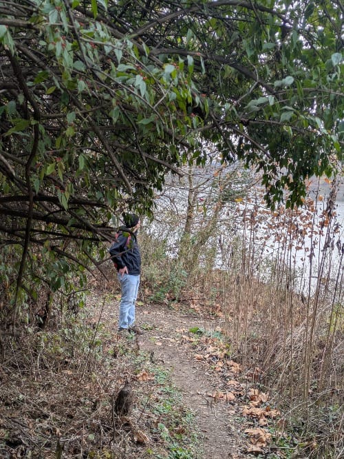 Craig and I decided to go on a hike in Frick park. He wanted to show me where he rode his bike one day. It sounded nice. We walked the 9-Mile Creek trail down to the Monongahela at Duck Hollow. We followed a lovely trail east along the river, although I did point out to Craig that there was no way this could have been the trail that he rode his bike on as there were too many tree roots and rocks. He assented that I could be right. Thus, validated, we continued on this path.