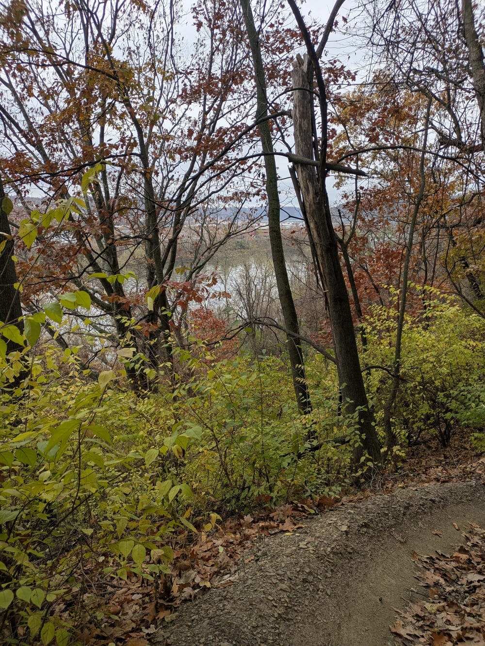 After 3-4 miles our trail took a spur that started to parallel two sets of train tracks. On the tracks nearest us sat a stationary train with no engine attached to it. This was seemingly where our trail ended unless, according to Craig, we wanted to hike all the way to Braddock. Craig pulled out his new, fancy Strava trail map on his phone. According to this there was another trail on the other side of the train tracks that would lead us back to Frick Park. On Strava the other trail's name was the Humpular. What the heck is the Humpular we asked ourselves rhetorically. Well, being the safety-conscious, responsible adults that we are, we said there was no way we were going to crawl under a train, or climb over it to cross the other track and get to the other side in order to, hopefully, find this trail. So we turned ourselves around and followed along the train tracks back to pick up our old trail.